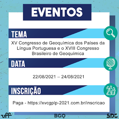 Na próxima semana, irá acontecer o XV Congresso de Geoquímica dos Países da Língua Portuguesa e o XVIII Congresso Brasileiro de Geoquímica, não deixe de participar e muito menos de enriquecer seu currículo.